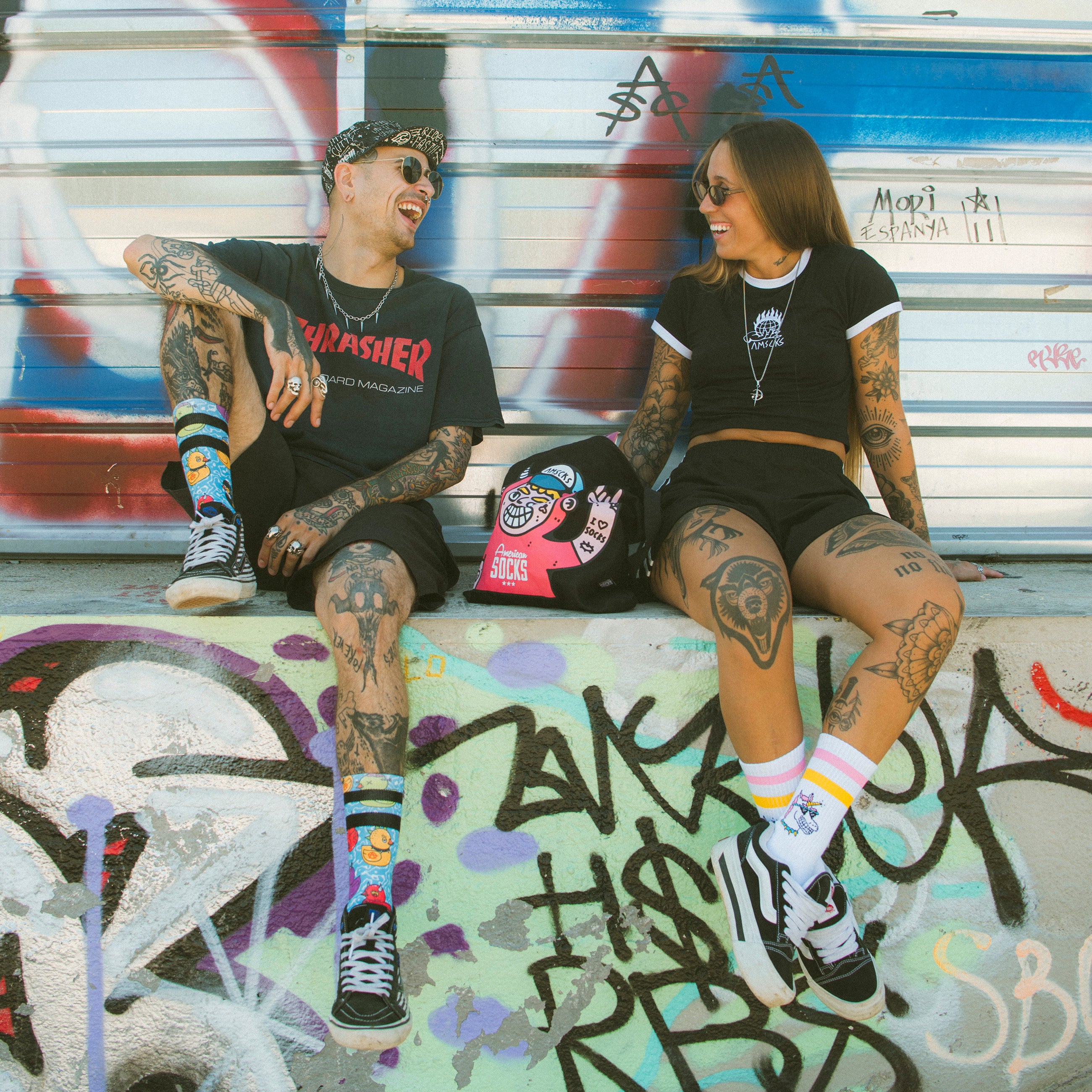 Weil Socken nicht langweilig sein sollten American Socks ist nicht nur etwas das du trägst sondern eine ganze Lebenseinstellung. Entstanden aus den Underground-Szenen der Musik des Skateboardens und der Tattoo-Kultur stehen wir für alle die außerhalb der Norm leben. Für diejenigen die Regeln hinterfragen sich laut und stolz ausdrücken und überall ihre eigene Energie verbreiten Unsere Wurzeln liegen in der Straßenkultur doch unsere Vision geht über Trends hinaus. Wir stehen für Authentizität Freiheit und die Kraft Dinge auf deine eigene Art zu tun. Wir feiern Individualität mutige Ideen und die furchtlose Energie du selbst zu sein ohne Entschuldigung Von Konzerten bis zum Skatepark von der Stadt bis in die Wildnis wir sind dabei. American Socks bedeutet eine Community aufzubauen die erschafft rebelliert unterstützt und inspiriert. Wenn du das Leben mit Haltung und Ziel lebst willkommen im Team.